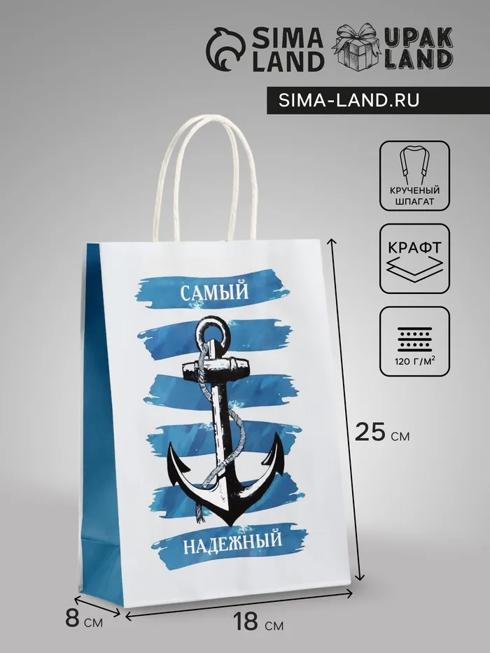 Пакет подарочный крафт «Самый надежный», 18×8×25 см — Характеристики