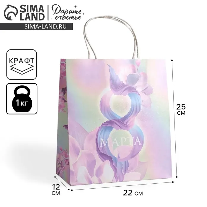 Пакет подарочный крафт, упаковка, «8 марта», 22 х 25 х 12 см — Характеристики