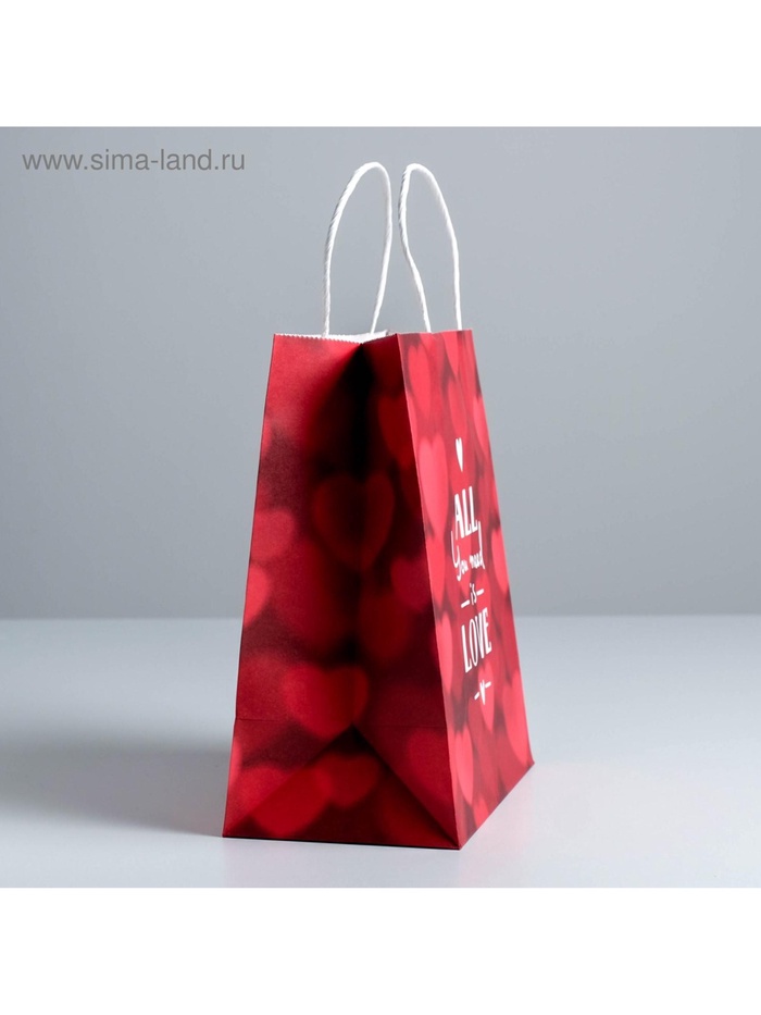 Пакет подарочный крафт, упаковка, «All you need is love», 22 х 25 х 12 см — Характеристики