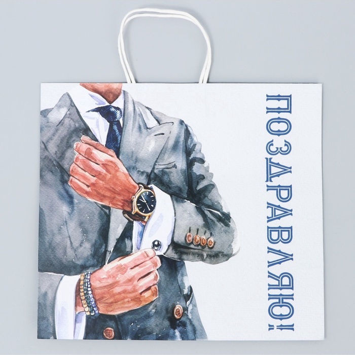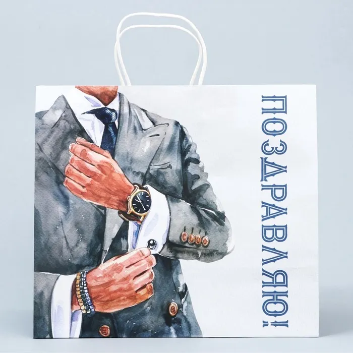 Пакет подарочный крафт, упаковка, «Джентельмен», 32 х 28 х 15 см — Характеристики