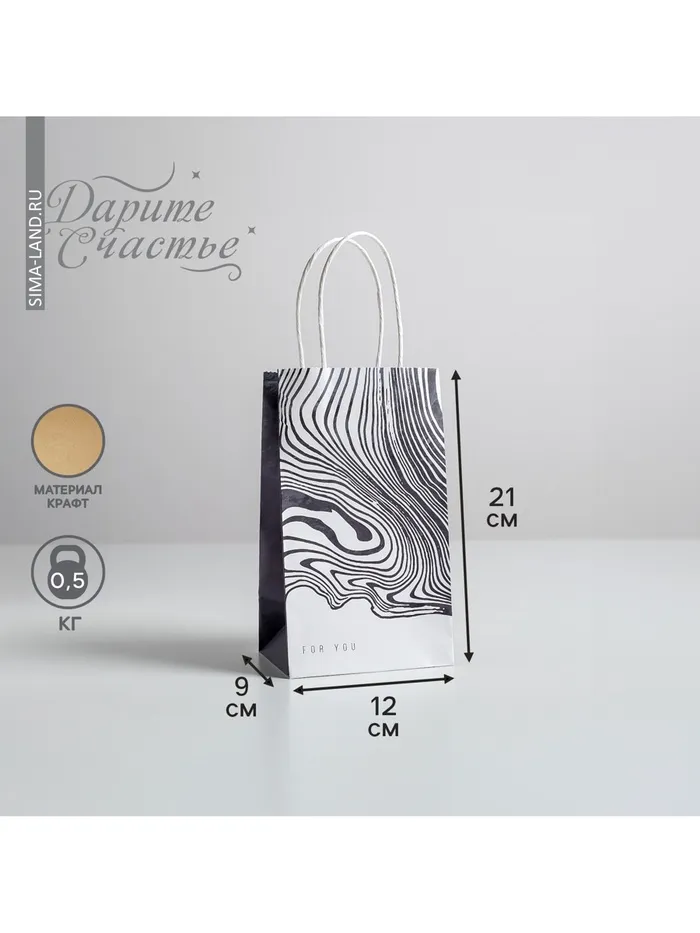 Пакет подарочный крафт, упаковка, «For you», 12 х 21 х 9 см — Характеристики