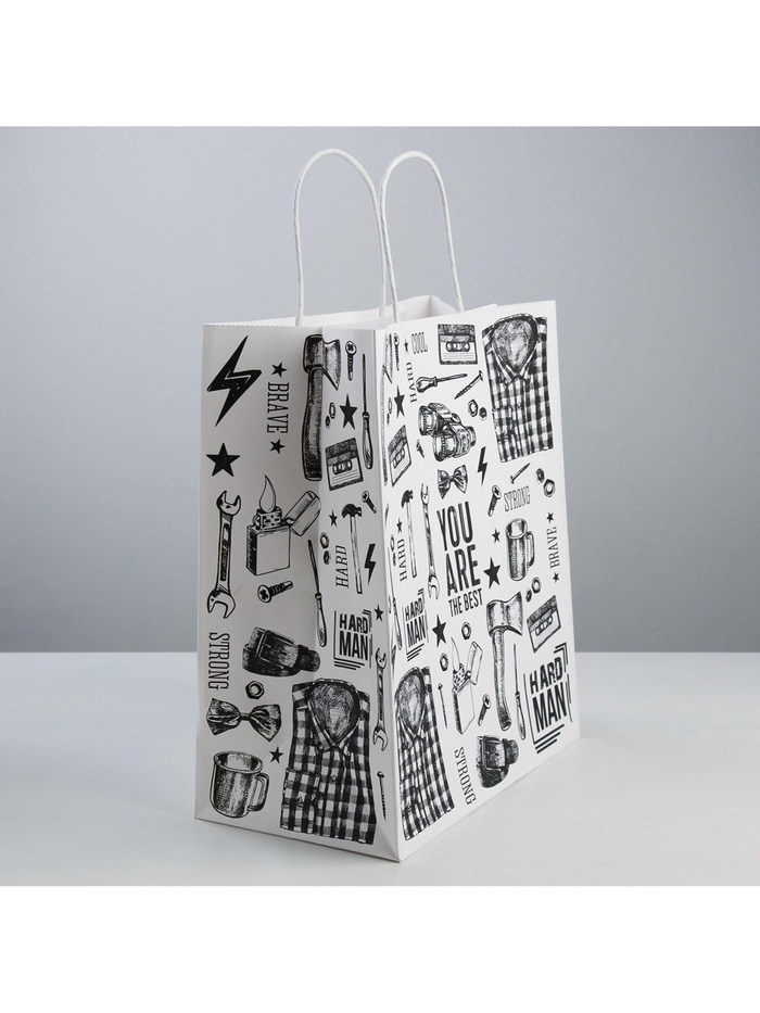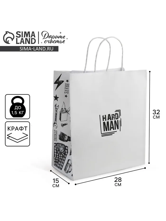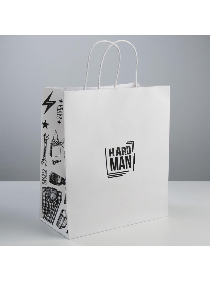 Пакет подарочный крафт, упаковка, Hard man, 28 х 32 х 15 см — Характеристики