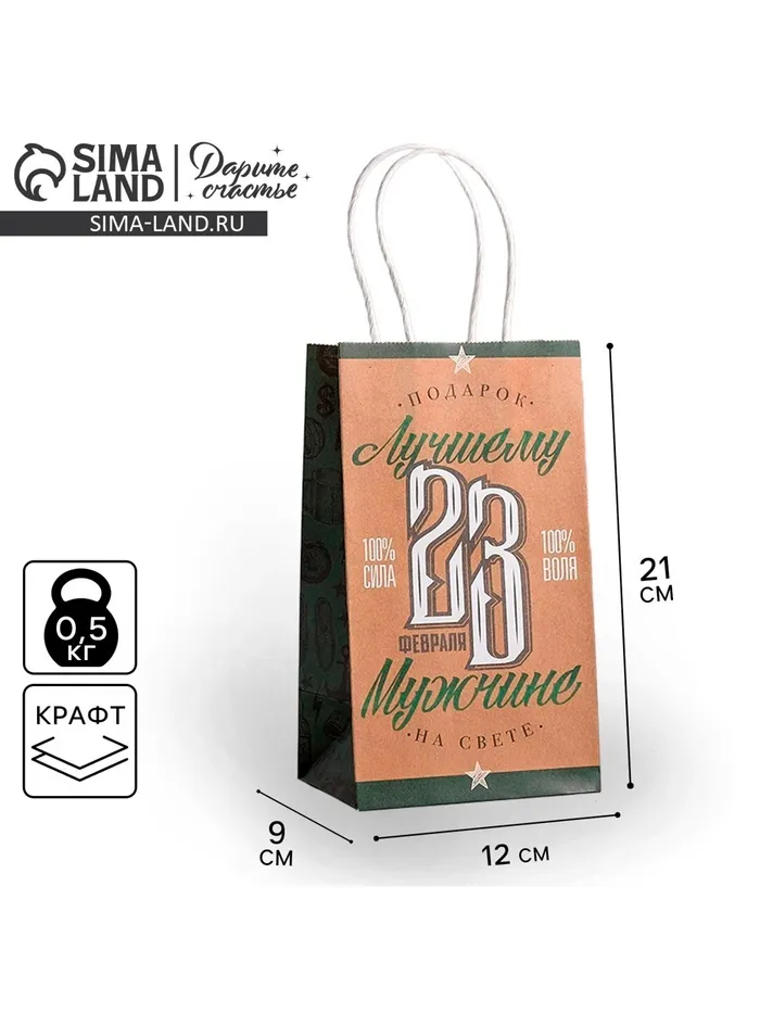 Пакет подарочный крафт, упаковка, «С 23 февраля», 12 х 21 х 9 см — Характеристики