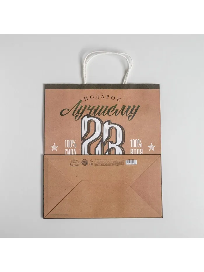Пакет подарочный крафт, упаковка, «С 23 февраля», 28 х 32 х 15 см — Характеристики