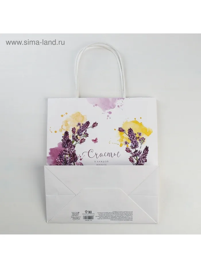 Пакет подарочный крафт, упаковка, «Счастье в каждой минуте», 22 х 25 х 12 см — Характеристики