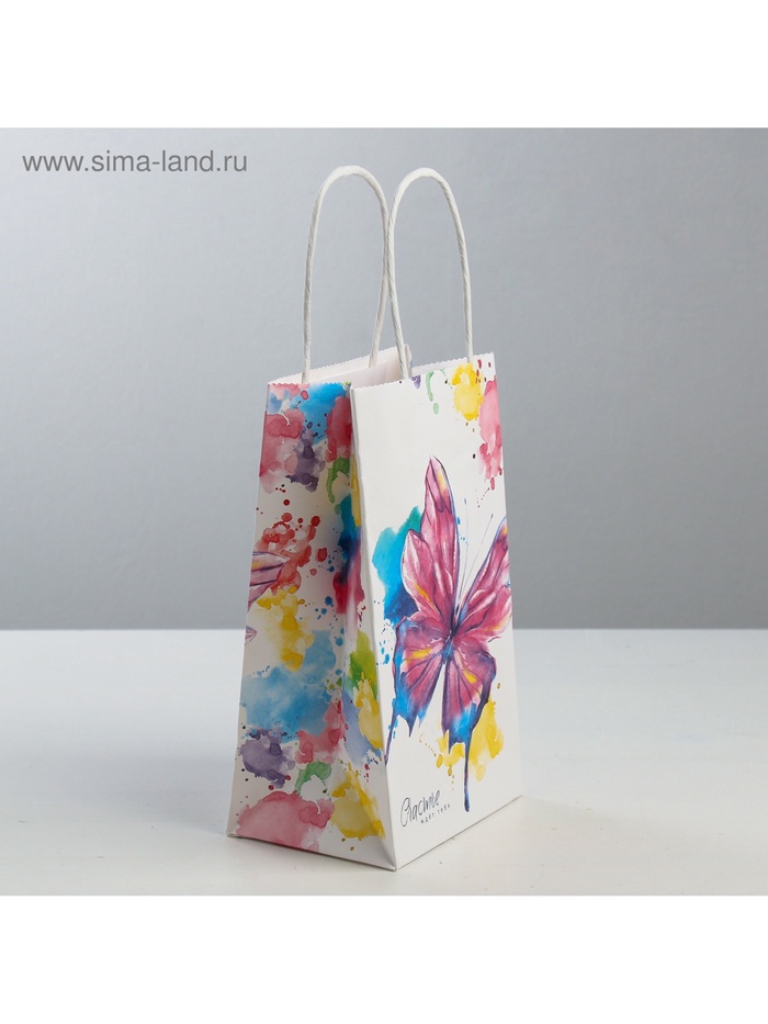 Пакет подарочный крафт, упаковка, «Счастье ждёт тебя», 12 х 21 х 9 см — Характеристики