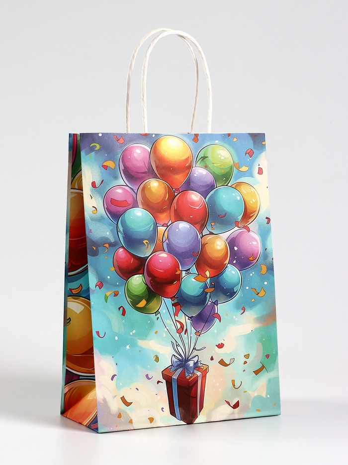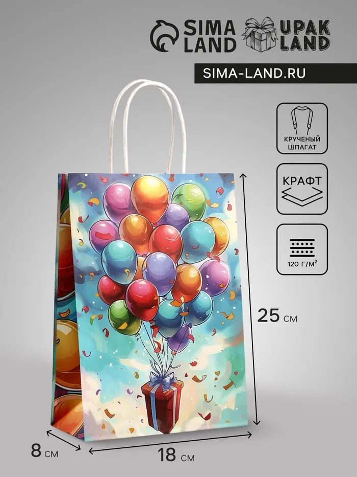 Пакет подарочный крафт «Воздушные шарики», 18×8×25 см — Характеристики