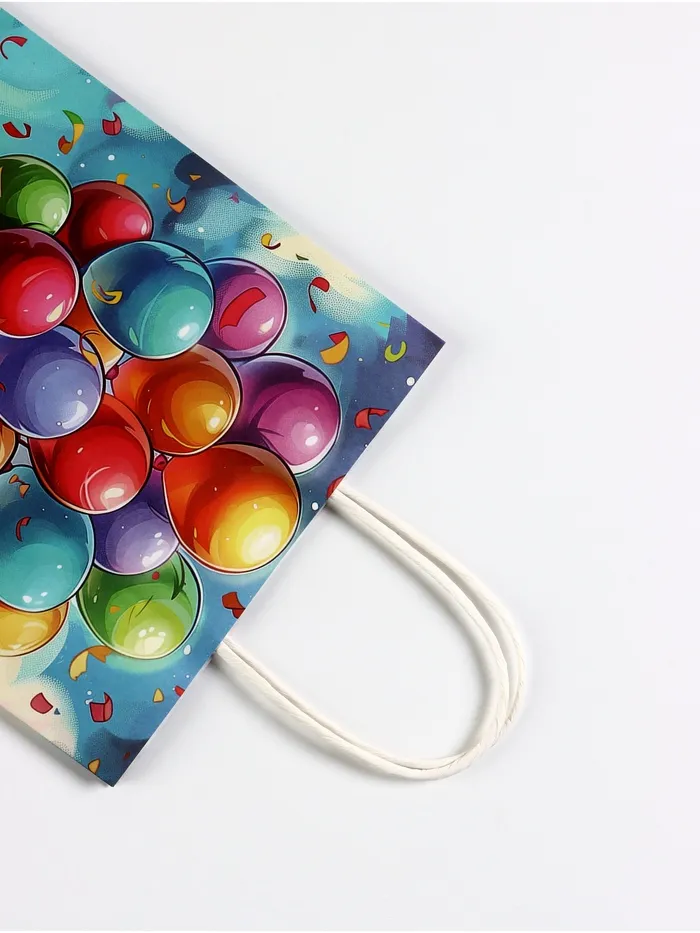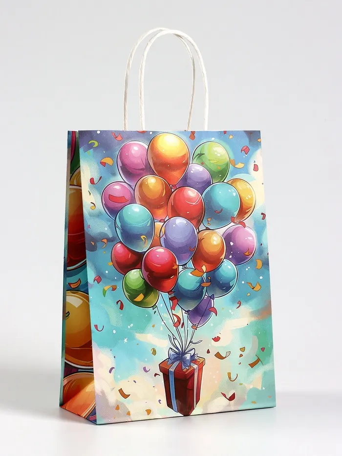 Подарочный крафт-пакет «Воздушные шарики» — это яркое и креативное решение для упаковки подарков на день рождения, юбилей или другие праздники. Его праздничный дизайн с воздушными шарами и надписями создаёт атмосферу радости и веселья, а натуральная крафт-бумага добавляет упаковке природной эстетики.