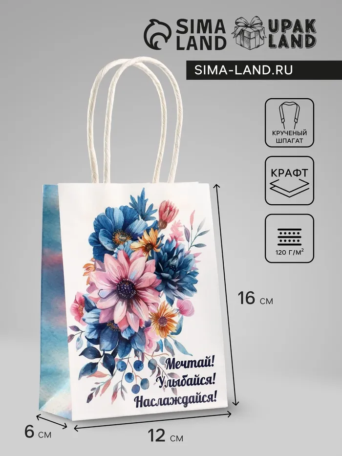 Плотность бумаги 120 г/м² гарантирует прочность и надёжность пакета, позволяя безопасно переносить даже хрупкие и ценные вещи.