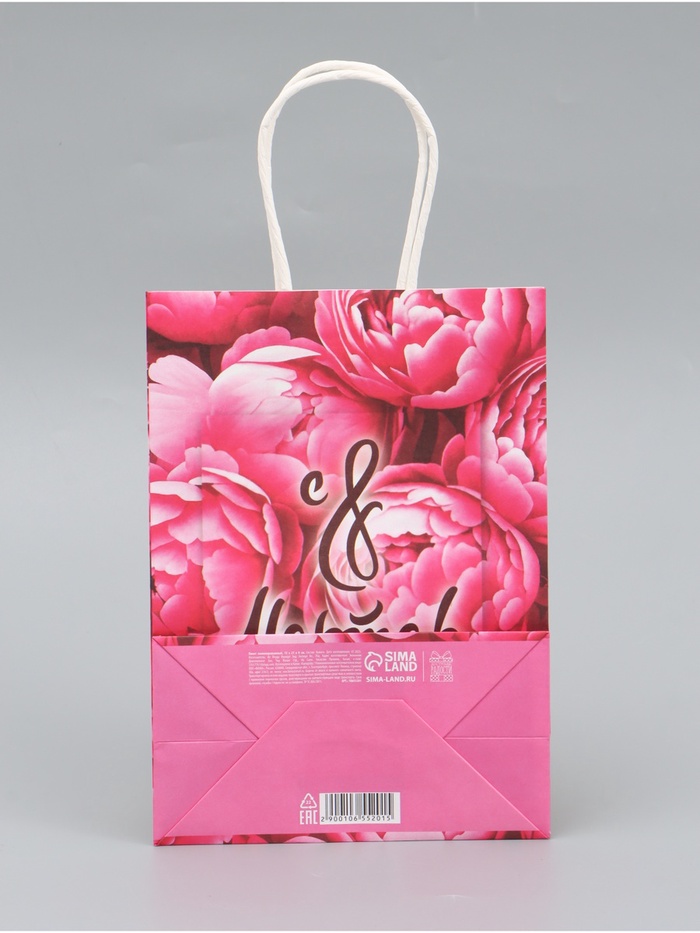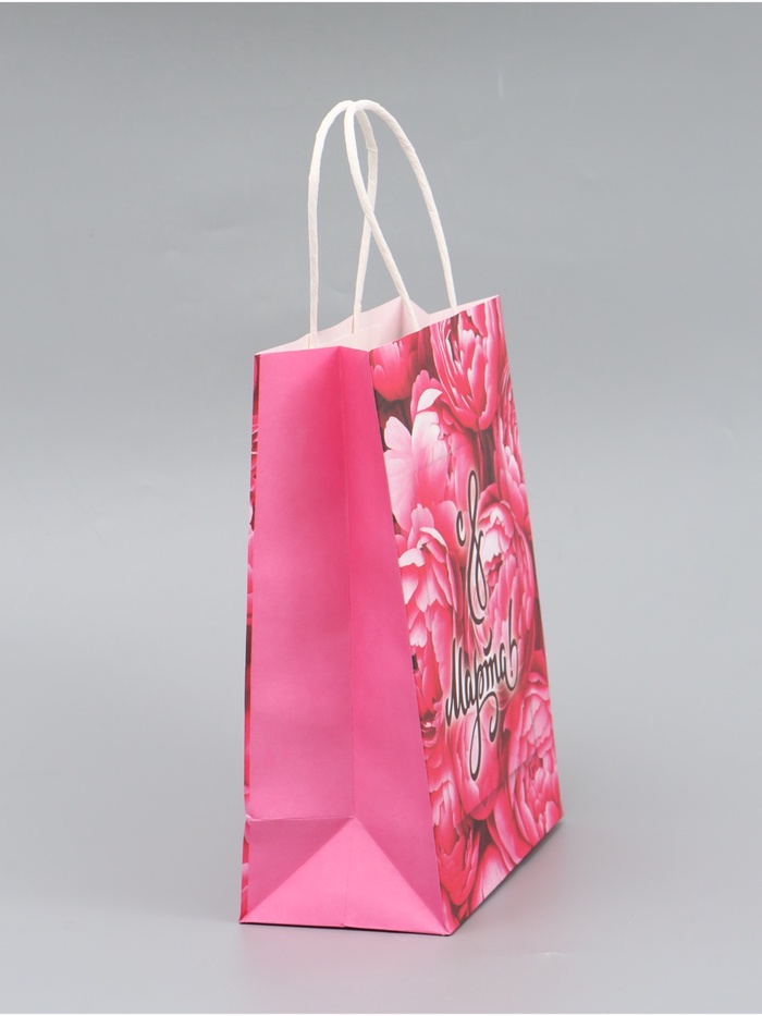 Этот пакет крафт на 8 Марта создан специально для того, чтобы сделать ваш подарок девушке ещё более особенным. Плотность бумаги 120 г/м² гарантирует прочность и надёжность пакета, позволяя безопасно переносить даже хрупкие и ценные вещи.