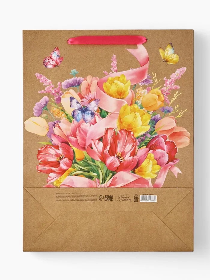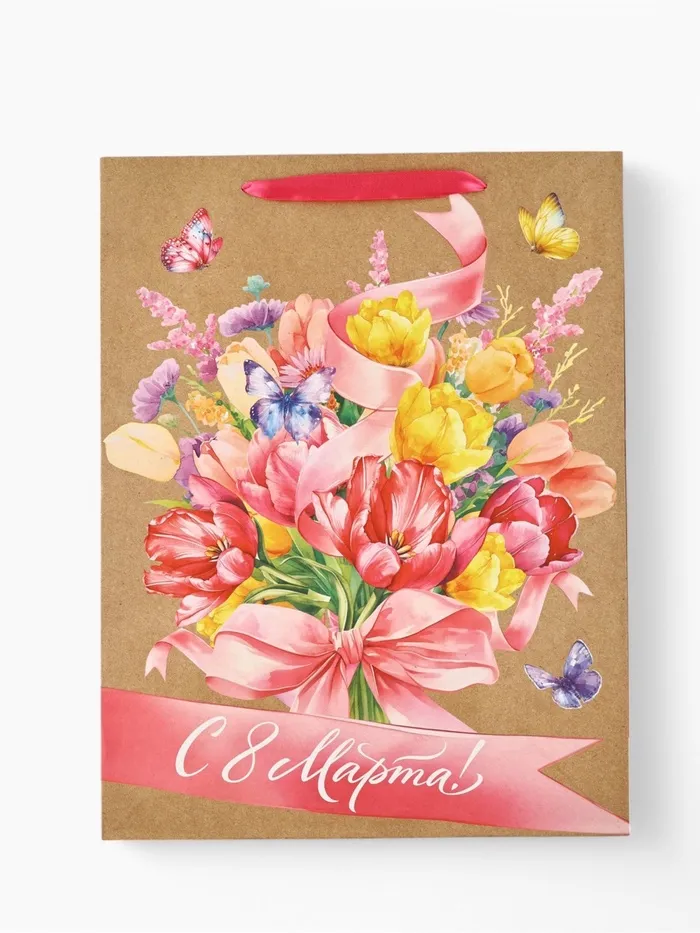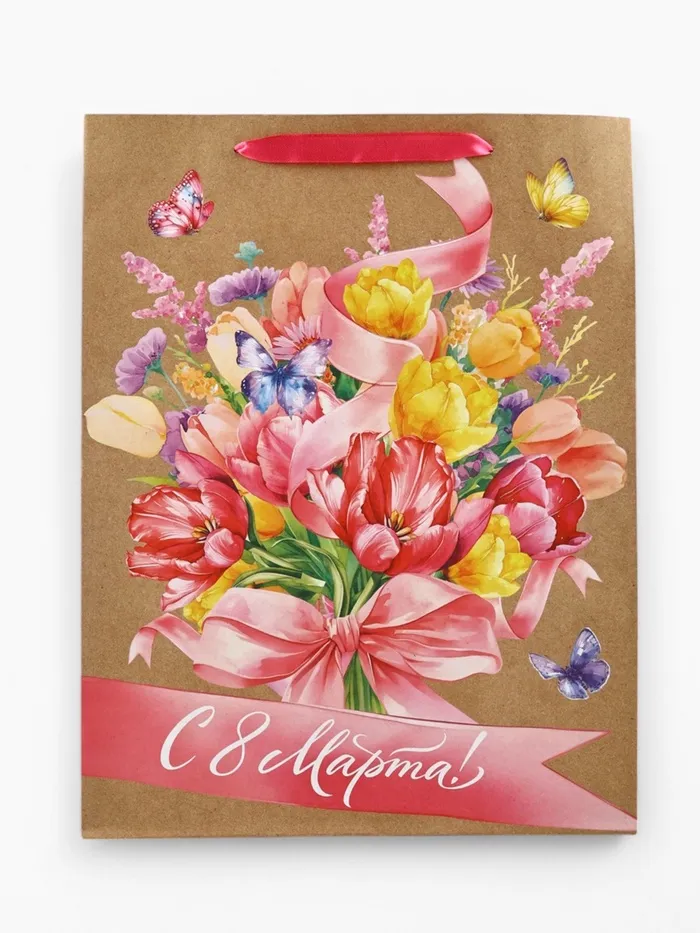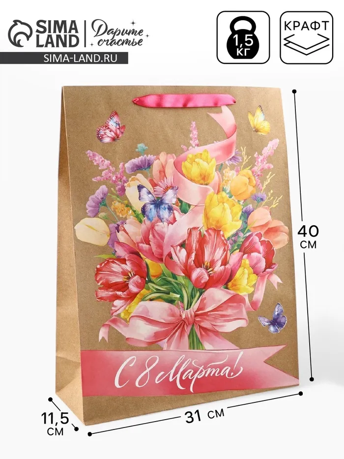 Пакет подарочный крафтовый «8 марта», L 31 х 11.5 х 40 см — Характеристики