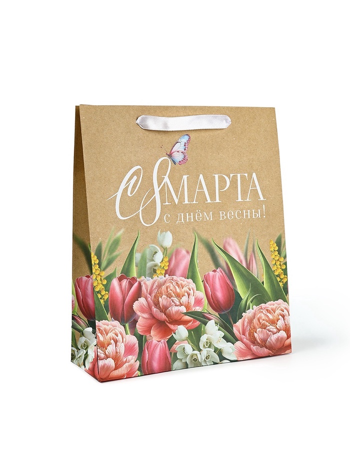 Пакет подарочный крафтовый «8 марта», M 25.5 х 9 х 30 см — Характеристики