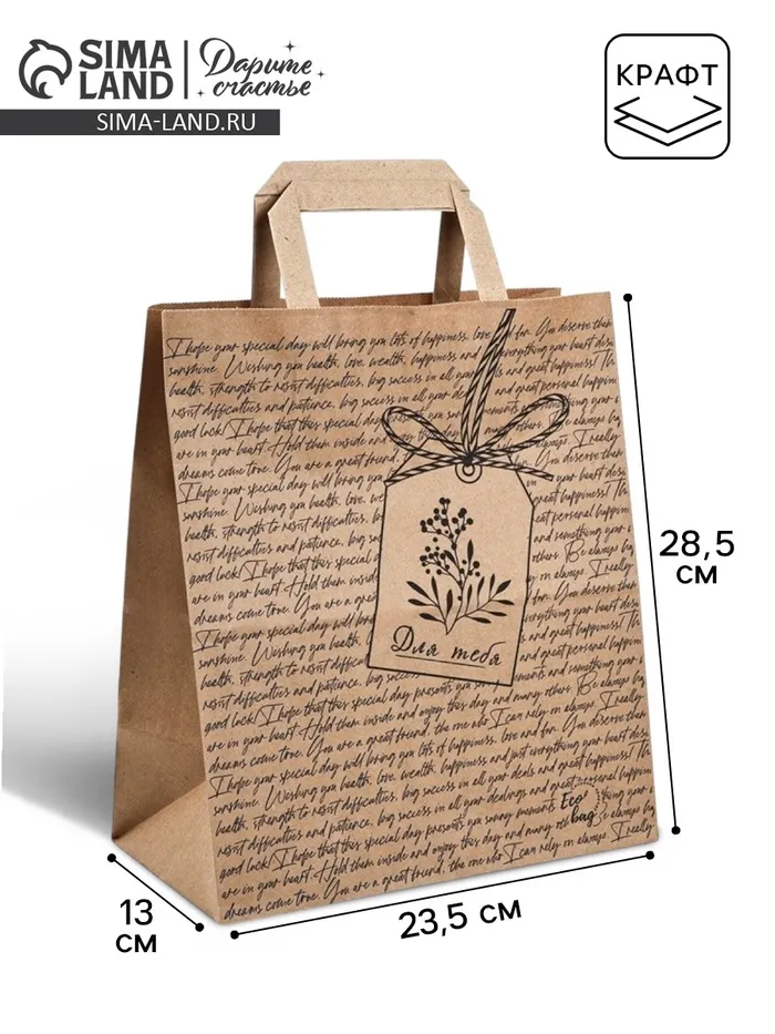 Пакет подарочный крафтовый «Для тебя», 23.5 х 28.5 х 13 см — Характеристики