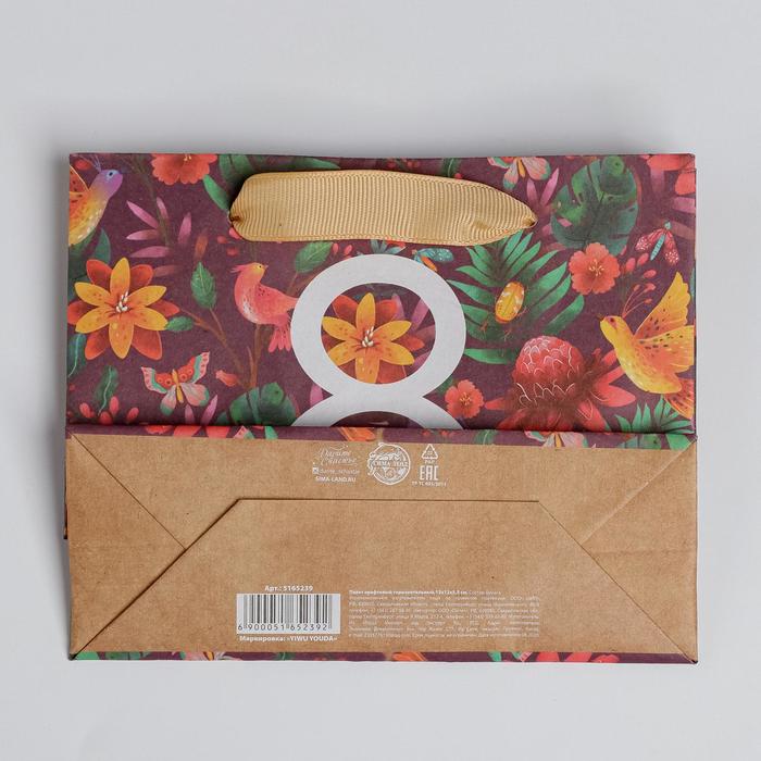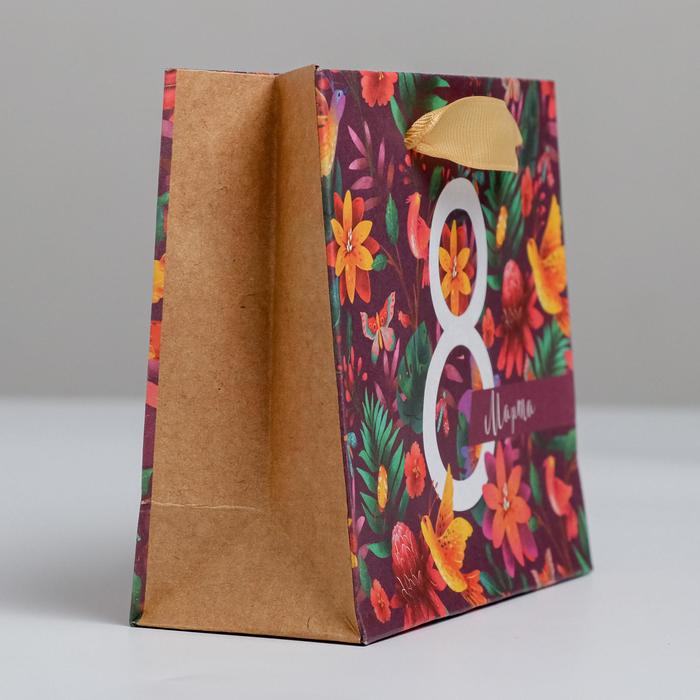 Пакет подарочный крафтовый горизонтальный, упаковка, «8 Марта», S 15 х 12 х 5,5 см — Характеристики