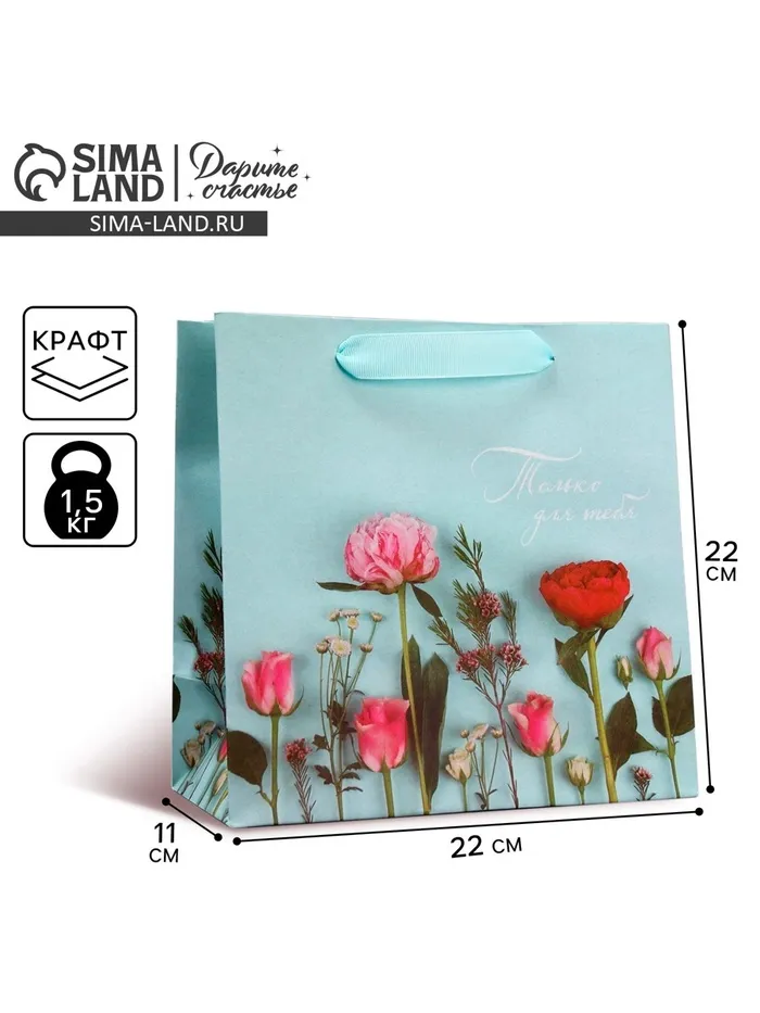 Пакет подарочный крафтовый квадратный, упаковка, «Нежные чувства», 22 х 22 х 11 см — Характеристики