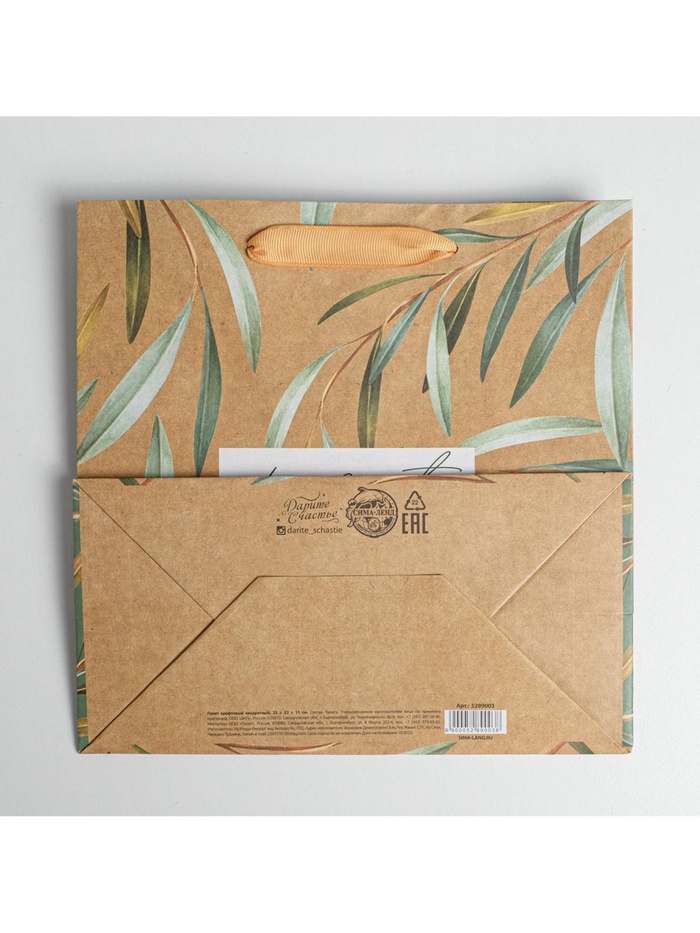 Пакет подарочный крафтовый квадратный, упаковка, Present, 22 х 22 х 11 см — Характеристики