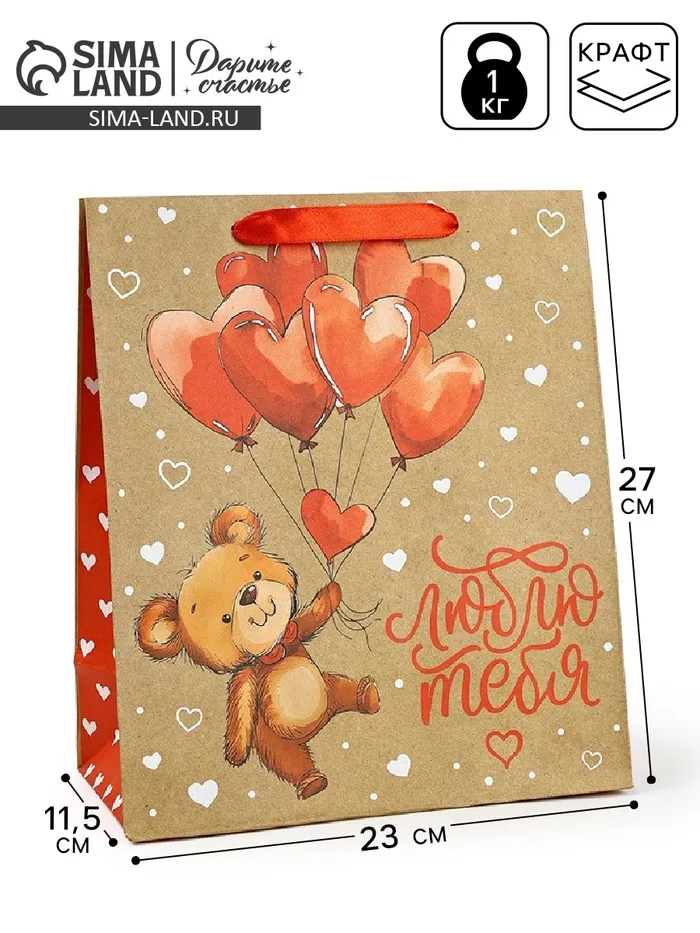 Пакет подарочный крафтовый «Люблю», ML 23 х 11.5 х 27 см — Характеристики