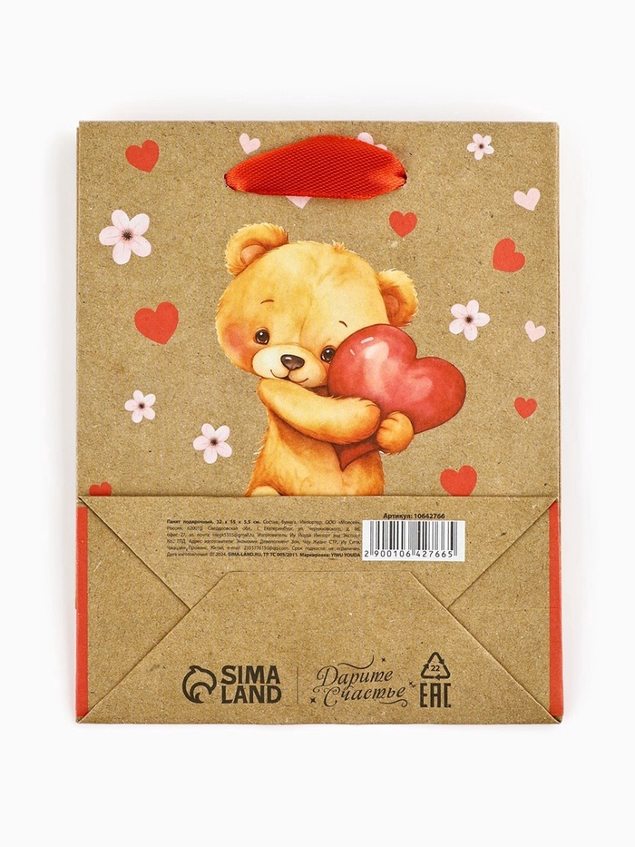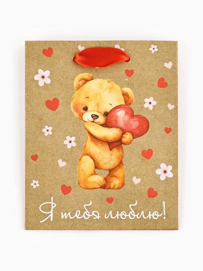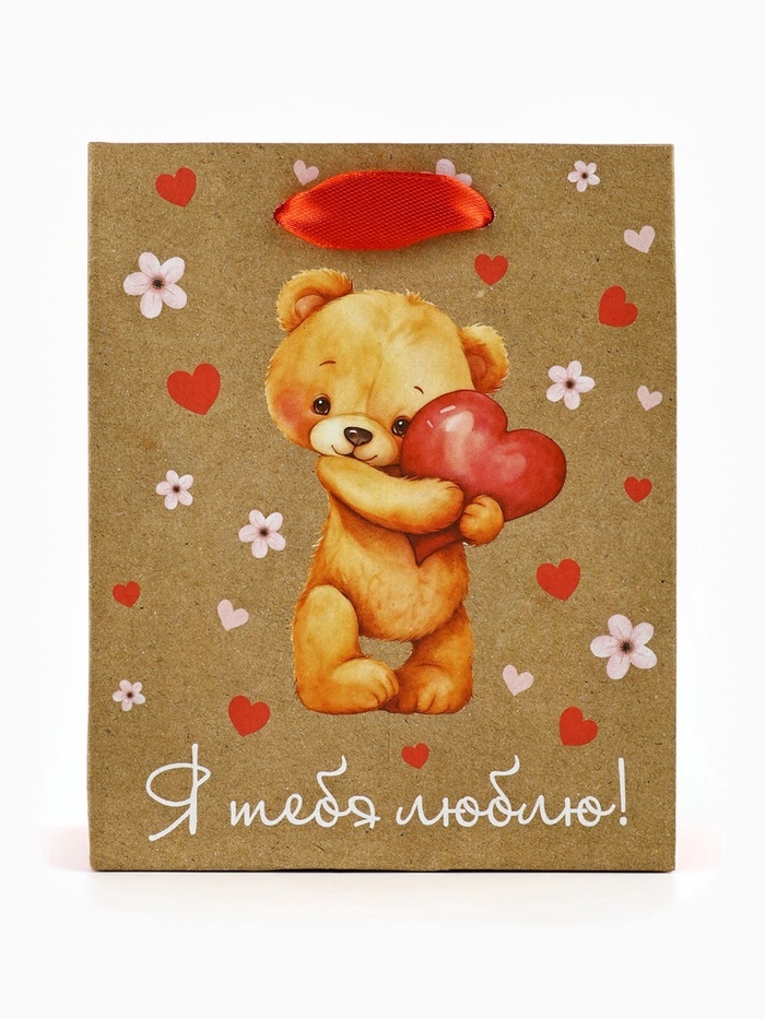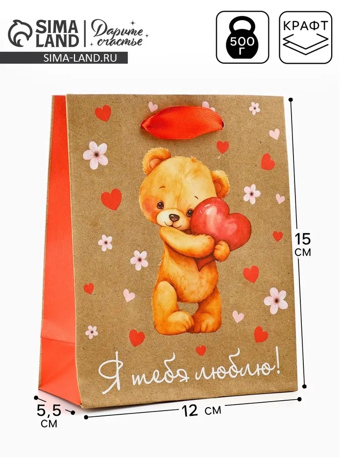 Пакет подарочный крафтовый «Люблю», S 12 х 5.5 х 15 см — Характеристики