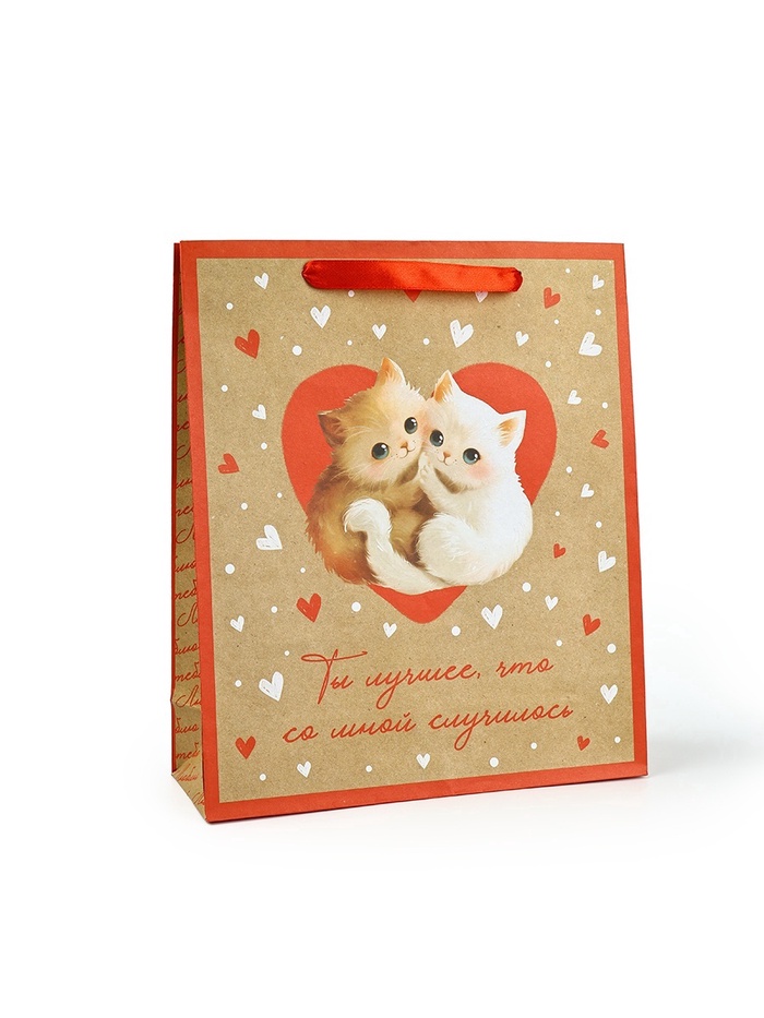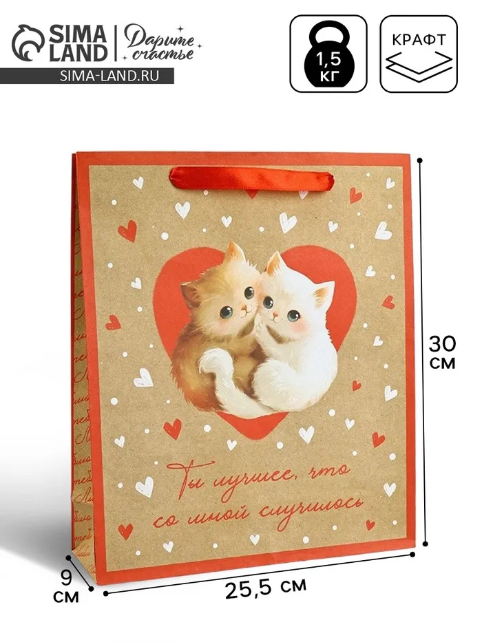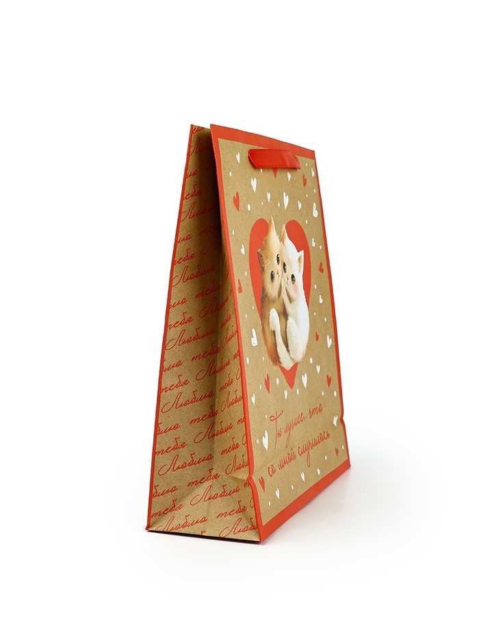 Пакет подарочный крафтовый «Люблю тебя», M 25.5 х 9 х 30 см — Характеристики