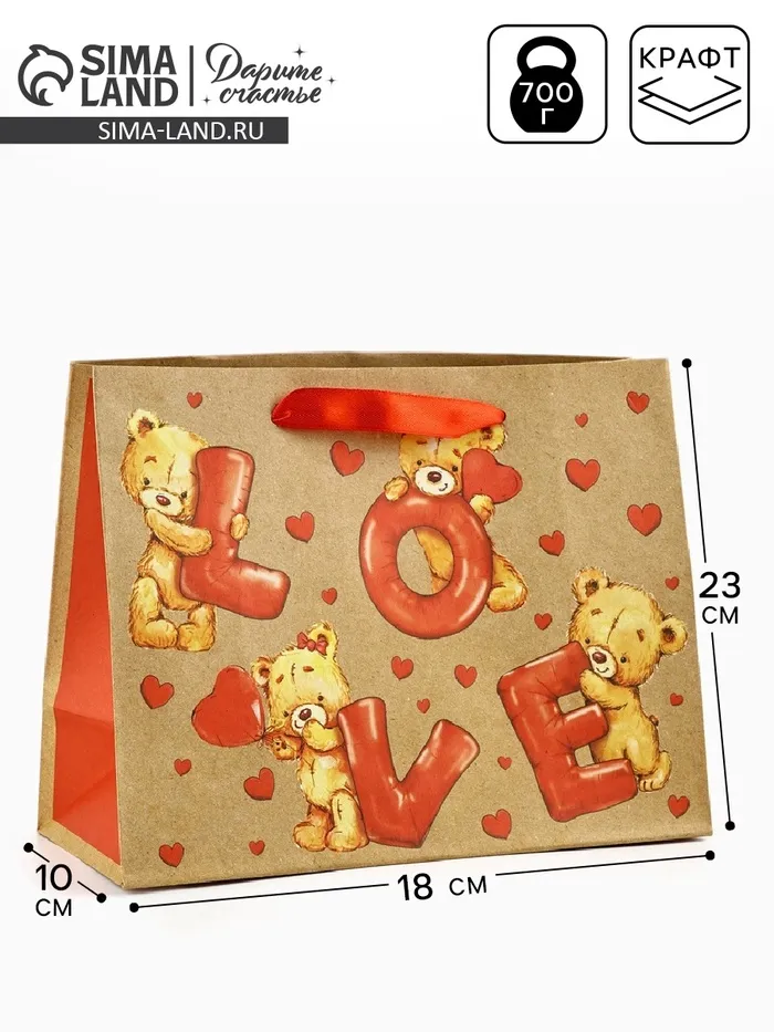 Пакет подарочный крафтовый «Любовь», MS 18 х 10 х 23 см — Характеристики