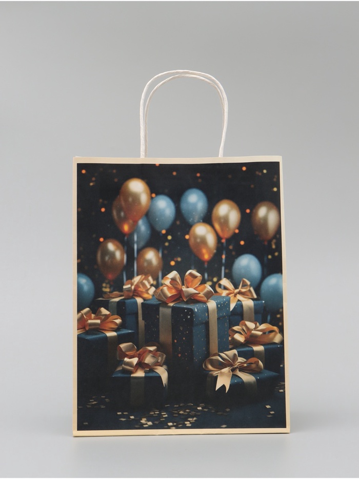 Этот крафтовый пакет идеально подойдет для подарков любого типа – от книг и косметики до аксессуаров и сувениров, подчеркнув внимание к деталям и стильный подход к упаковке.