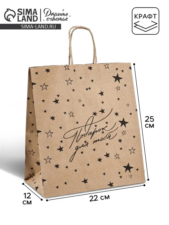 Пакет подарочный крафтовый «Подарок для тебя» 22 х 25 х 12 см — Характеристики