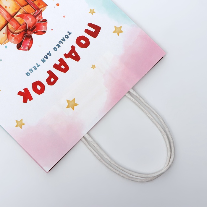 Пакет подарочный крафтовый «Подарок только для тебя» 18×8×25 см, 120 г/м² — Характеристики