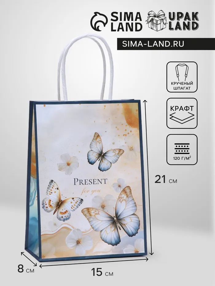 Пакет подарочный крафтовый Present for you 15×21×8 см, 120 г/м² — Характеристики