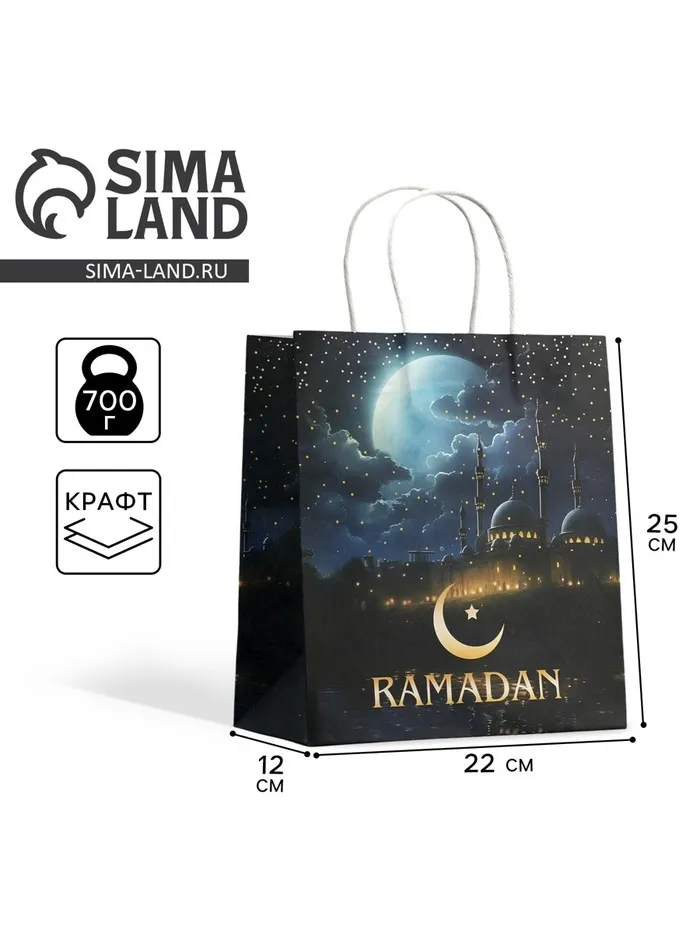 Пакет подарочный крафтовый «Рамадан», 22 х 25 х 12 см — Характеристики