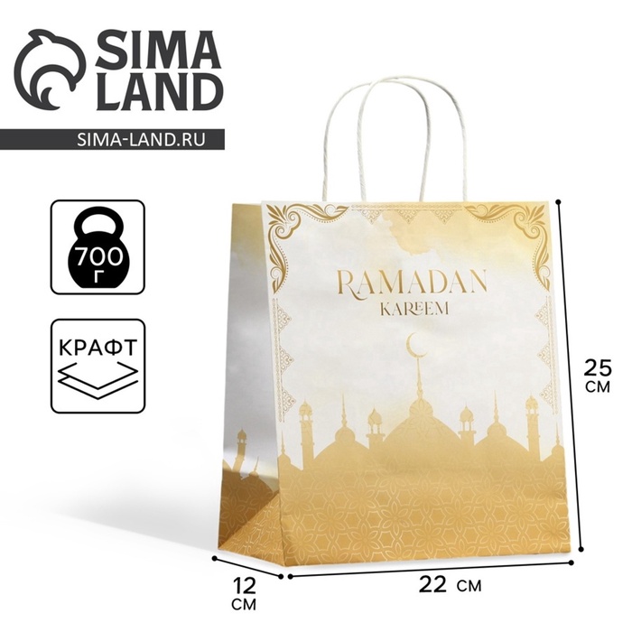 Пакет подарочный крафтовый «Рамадан», Ramadan kareem, 22 х 25 х 12 см — Характеристики