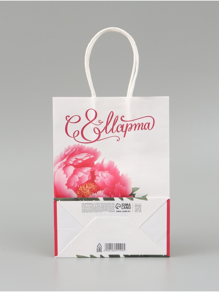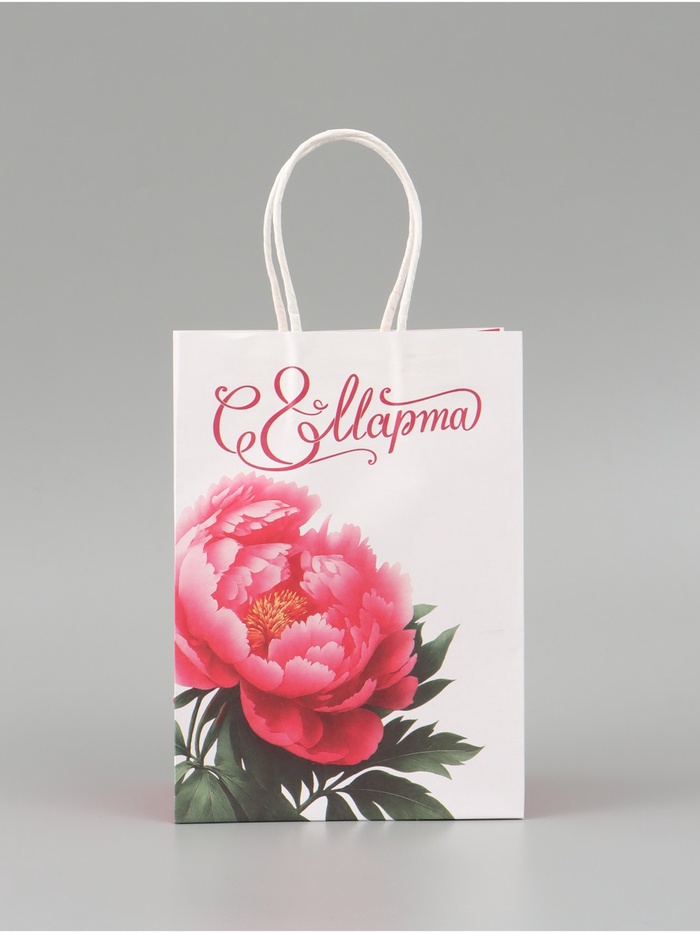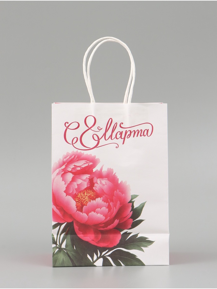 Пакет подарочный крафтовый «С 8 Марта!» 15×8×21 см — Характеристики