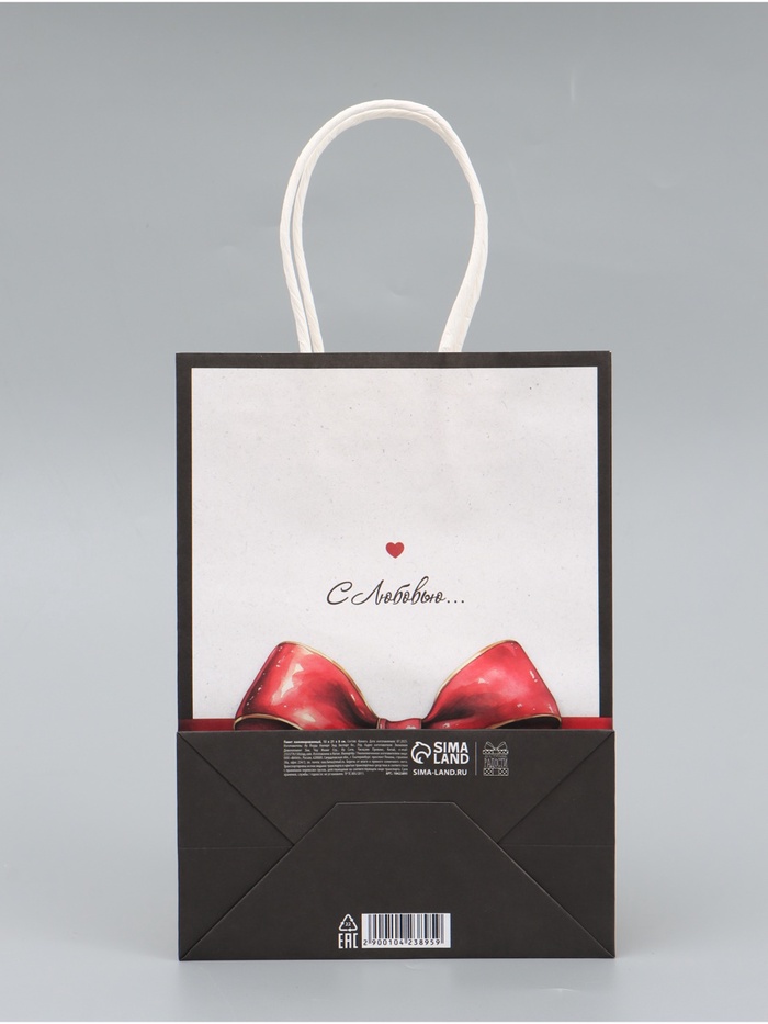 Пакет подарочный крафтовый «С любовью» 15×21×8 см, 120 г/м² — Характеристики