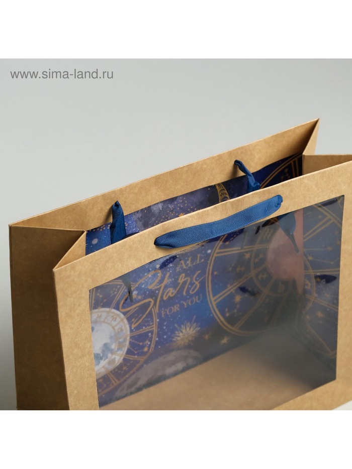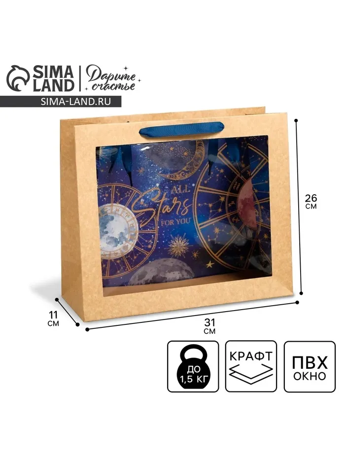 Пакет подарочный крафтовый с пластиковым окном, упаковка, «Космос: Stars», 31 х 26 х 11 см — Характеристики