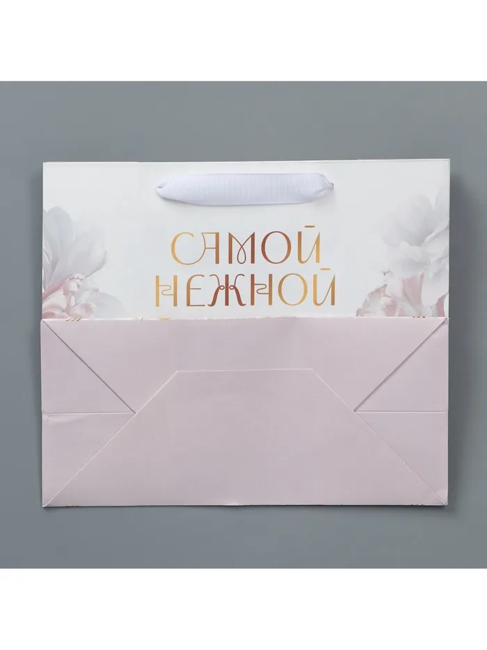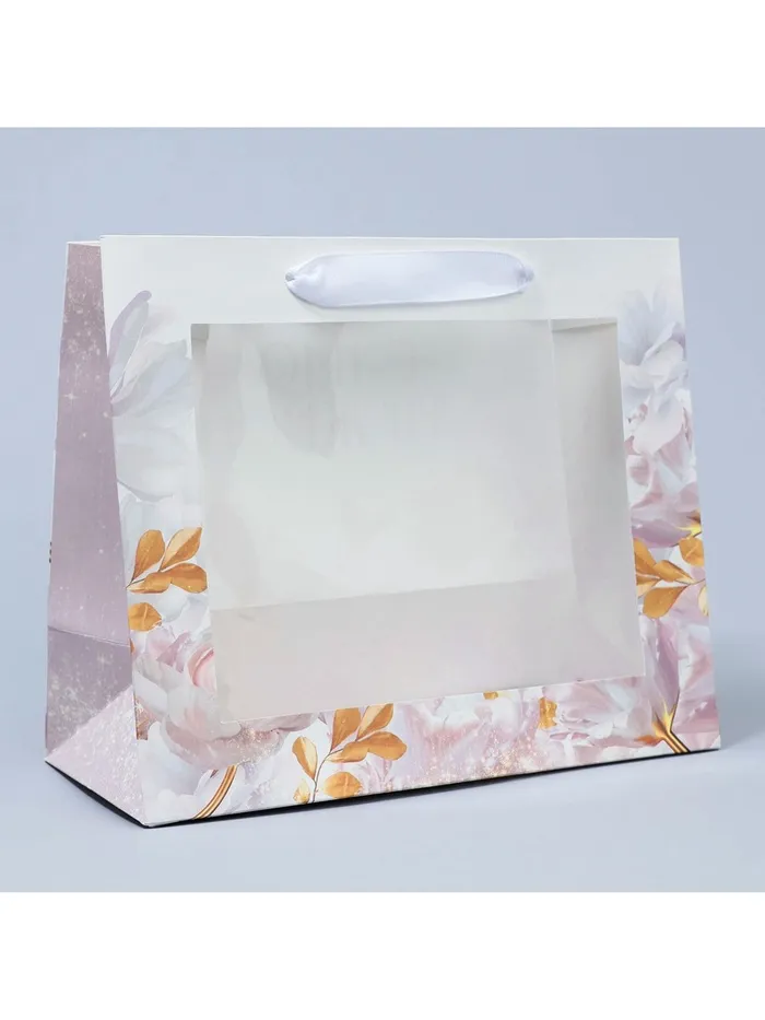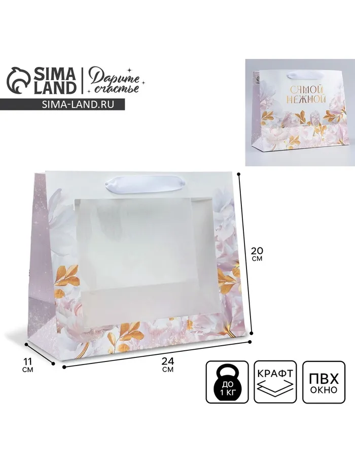 Пакет подарочный крафтовый с пластиковым окном, упаковка, «Самой нежной», 24 х 20 х 11 см — Характеристики