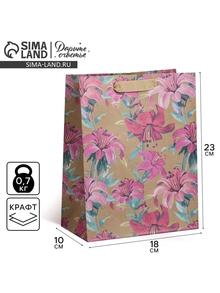 Пакет подарочный крафтовый, «Цветы», MS 18 х 23 х 10 см — Характеристики