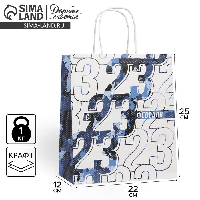 Пакет подарочный крафтовый, упаковка, «23 февраля», 22 х 25 х 12 см — Характеристики
