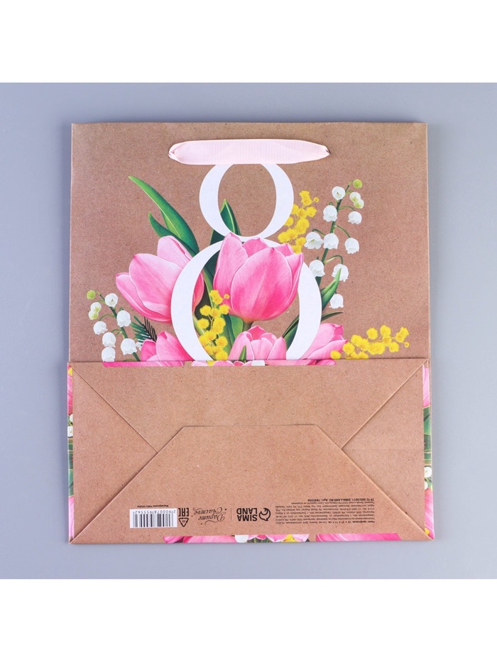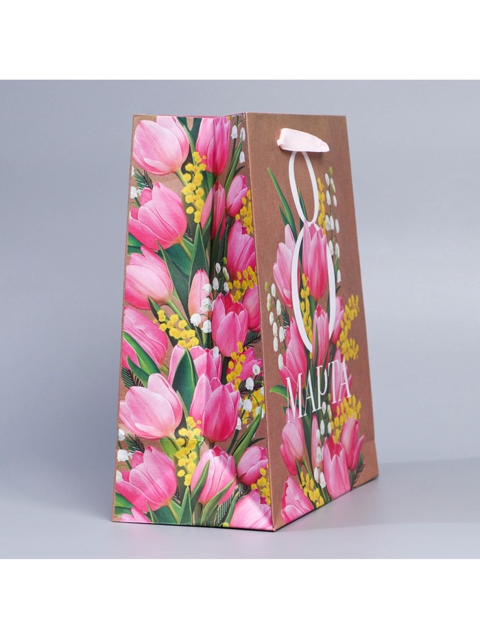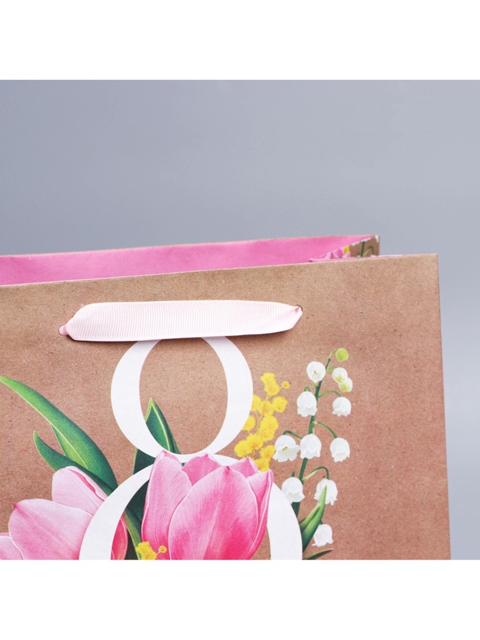 Пакет подарочный крафтовый, упаковка, «8 марта», ML 27 х 23 х 11.5 см