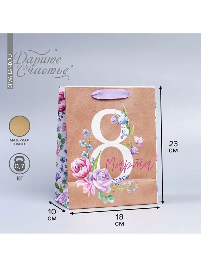 Пакет подарочный крафтовый, упаковка, «8 марта», MS 23×18×10 см — Характеристики