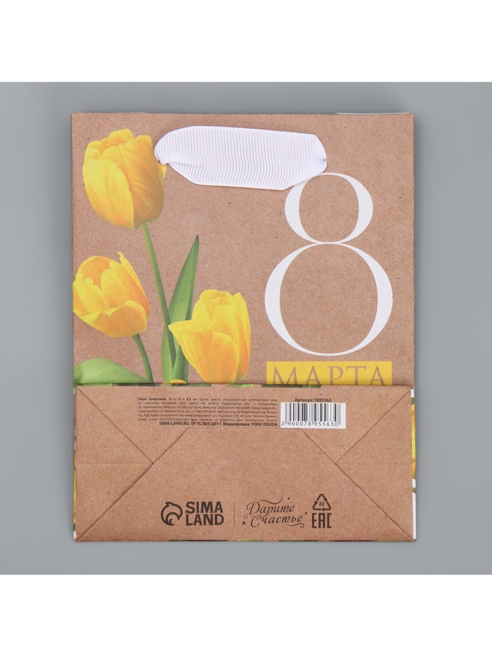 Пакет подарочный крафтовый, упаковка, «8 марта», S 12 х 15 х 5.5 см — Характеристики