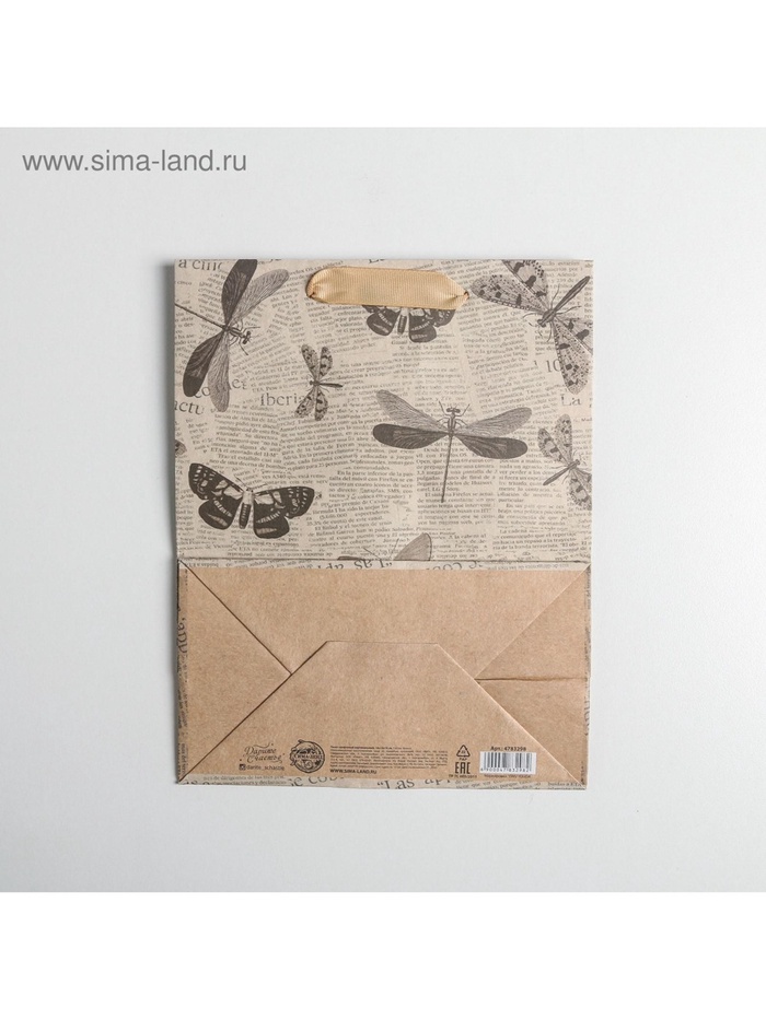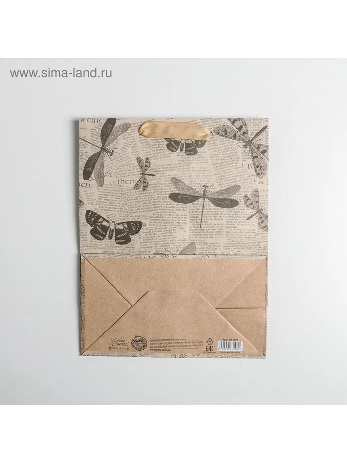 Пакет подарочный крафтовый, упаковка, «Бабочки», 18 х 23 х 10 см — Характеристики