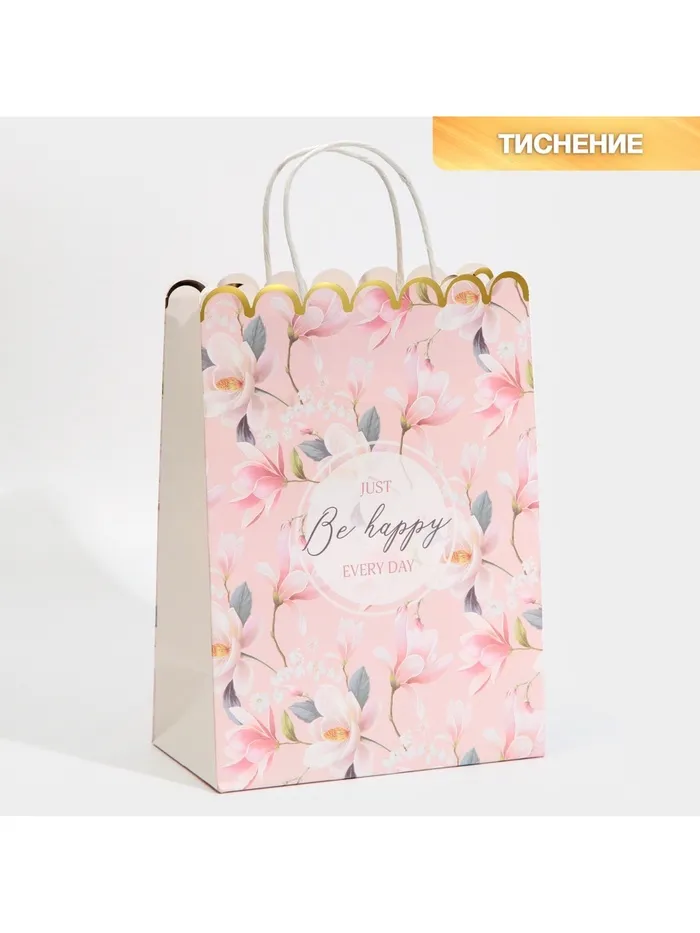 Пакет подарочный крафтовый, упаковка, «Be happy», 23 х 30 х 12 см — Характеристики