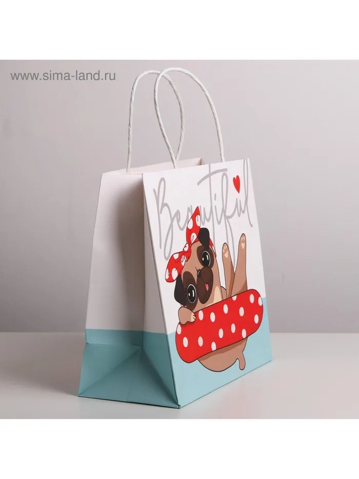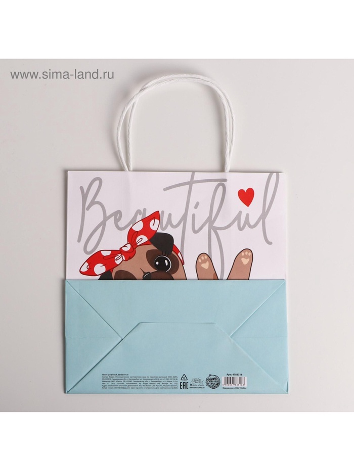 Пакет подарочный крафтовый, упаковка, «Beautiful», 22 х 22 х 11 см — Характеристики