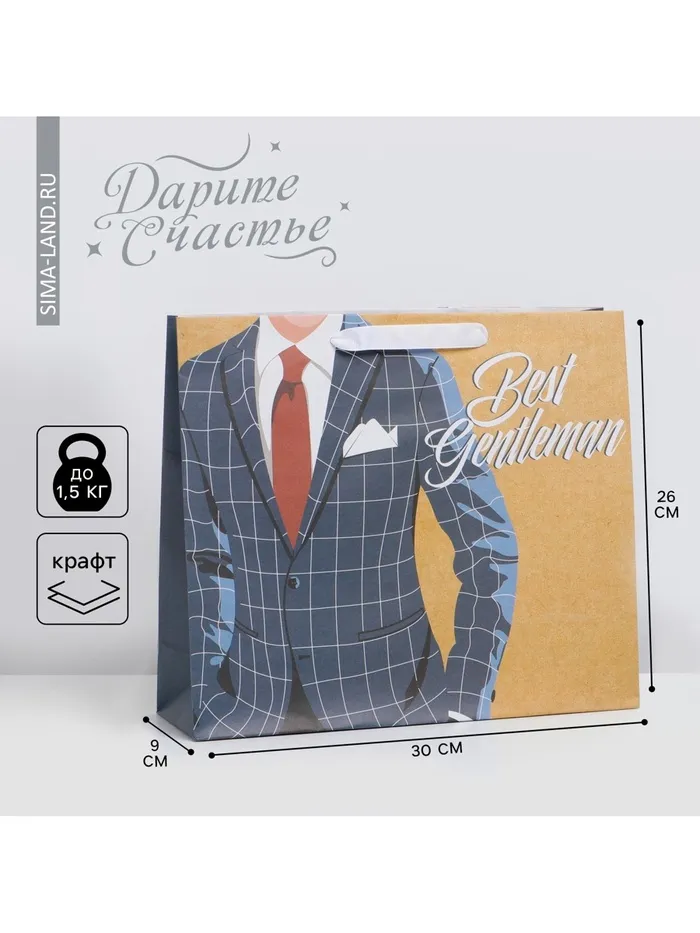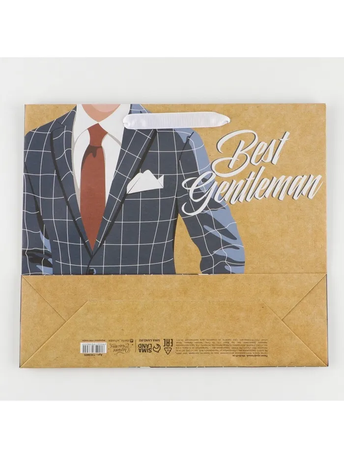 Пакет подарочный крафтовый, упаковка, «Best gentleman», M 30 х 25.5 х 9 см — Характеристики