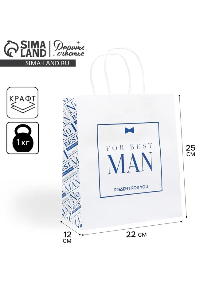 Пакет подарочный крафтовый, упаковка, Best man, 22 х 25 х 12 см — Характеристики
