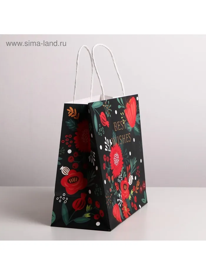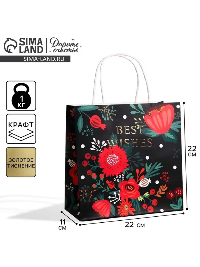Пакет подарочный крафтовый, упаковка, «Best wishes», 22 х 22 х 11 см — Характеристики