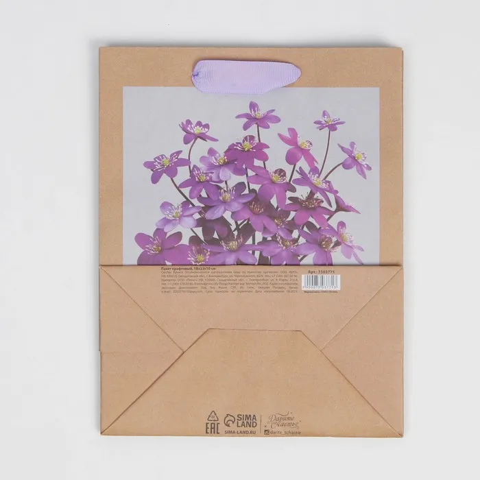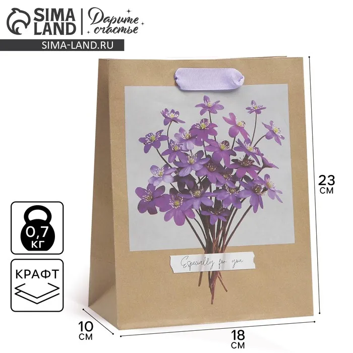 Пакет подарочный крафтовый, упаковка, «Букет для тебя», MS 18 х 23 х 8 см — Характеристики