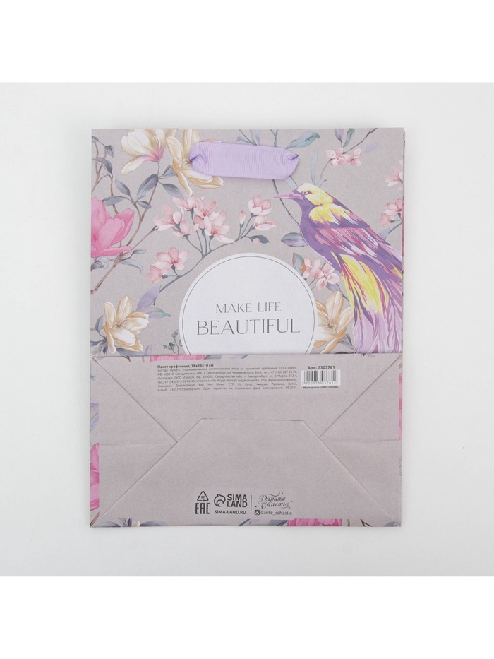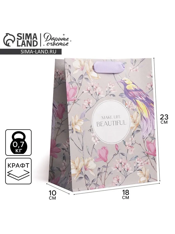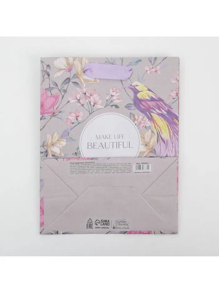 Пакет подарочный крафтовый, упаковка, «Чувство», MS 18 х 23 х 10 см — Характеристики