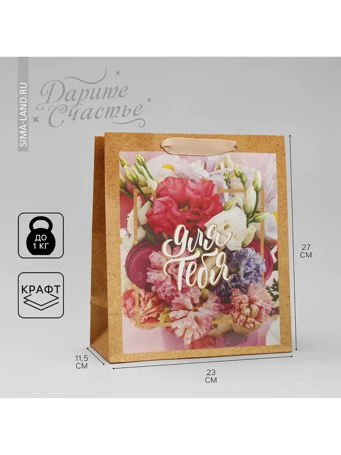 Пакет подарочный крафтовый, упаковка, «Для тебя прекрасной», ML 23 х 27 х 11.5 см — Характеристики