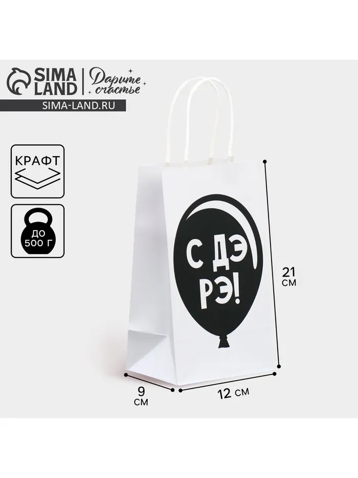 Пакет подарочный крафтовый, упаковка, «ДР», 12 х 21 х 9 см — Характеристики