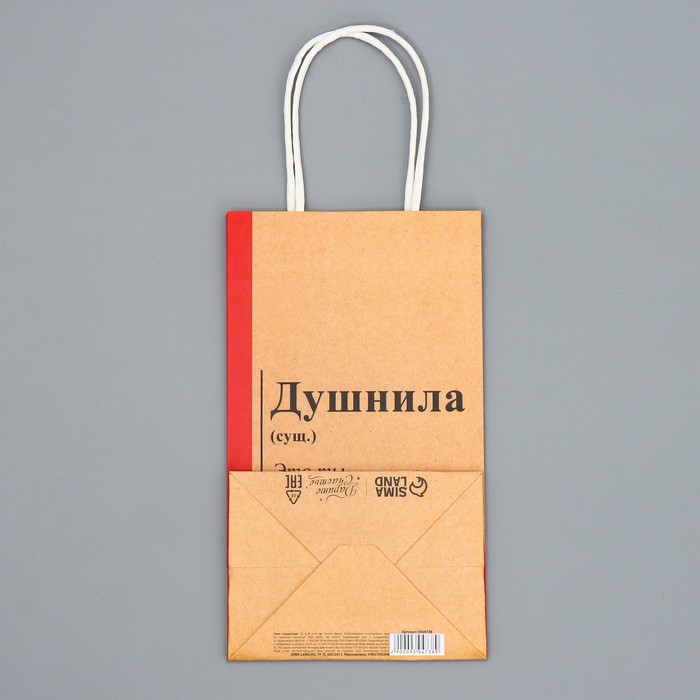 Пакет подарочный крафтовый, упаковка, «Душнила», 12×21×9 см — Характеристики